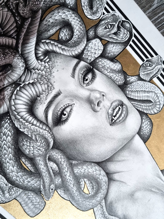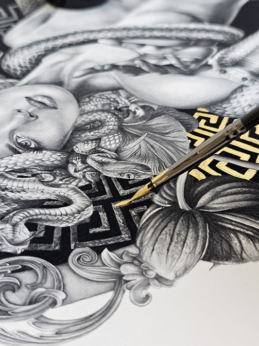 Over 50 hours of drawing was spent to create a special piece of artwork that tells the story of Medusa.